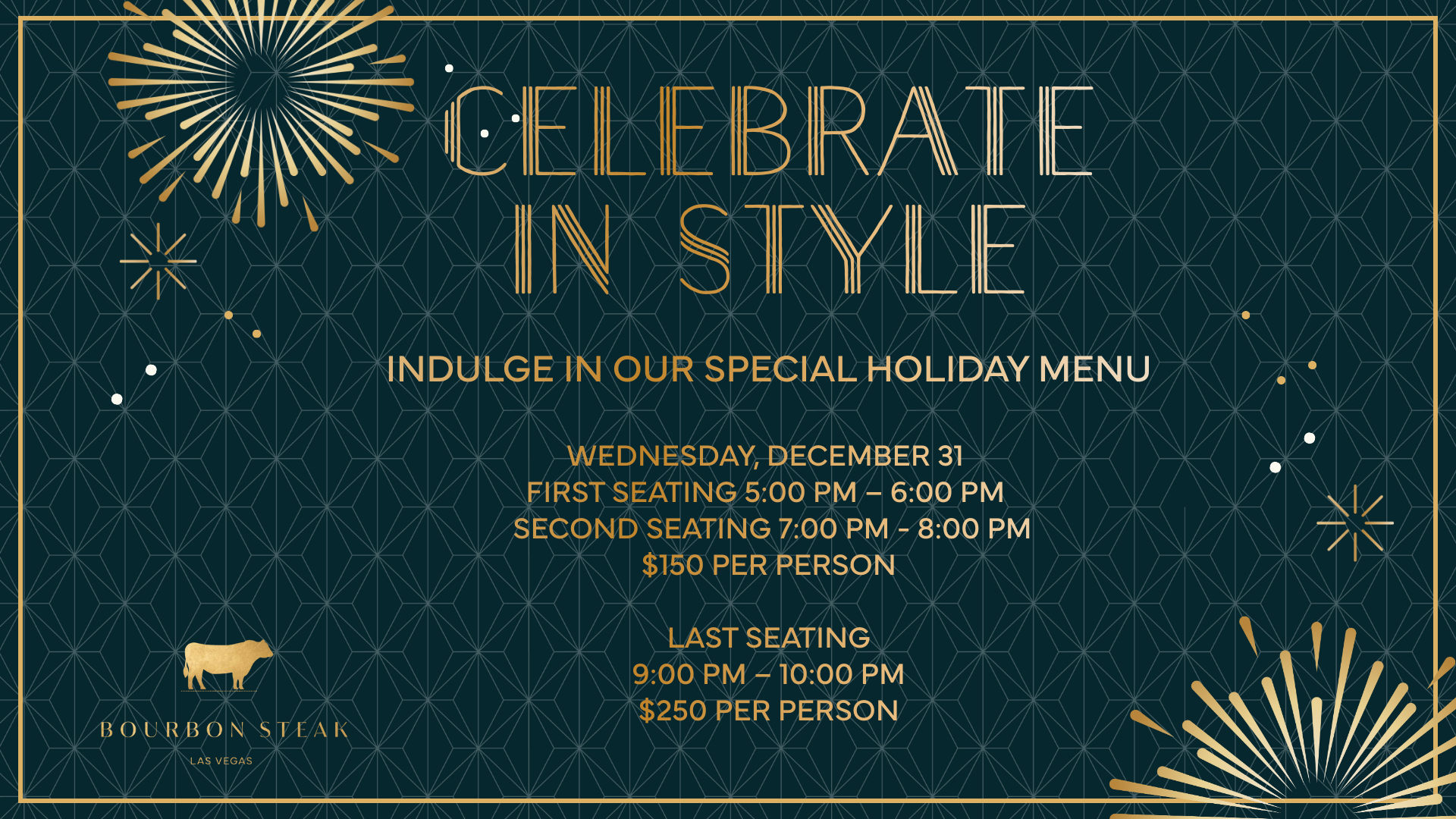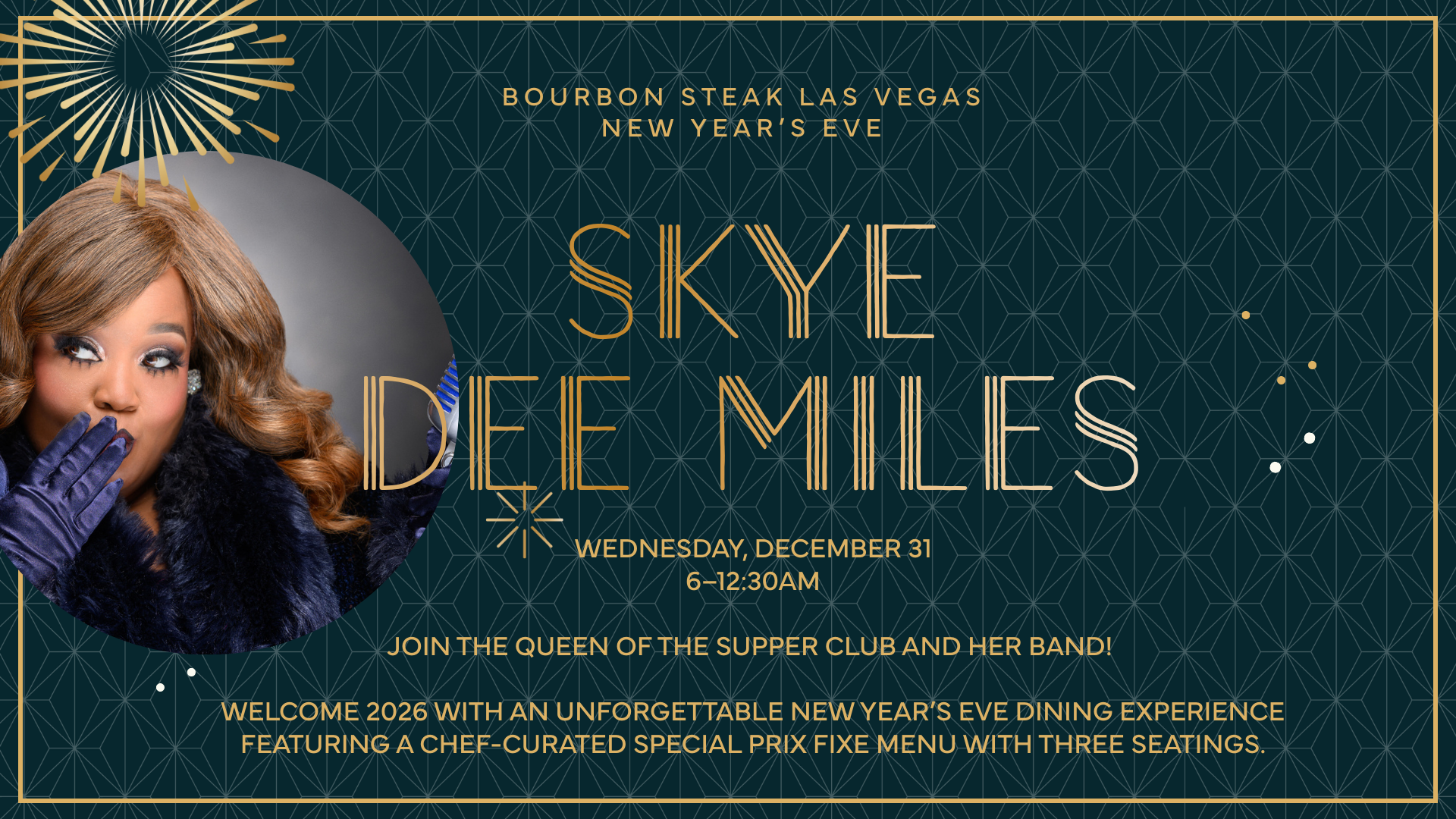 Ring in New Year’s Eve at Bourbon Steak Las Vegas with a special prix-fixe holiday menu, followed by a live performance from Skye Dee Miles starting at 6:00pm.